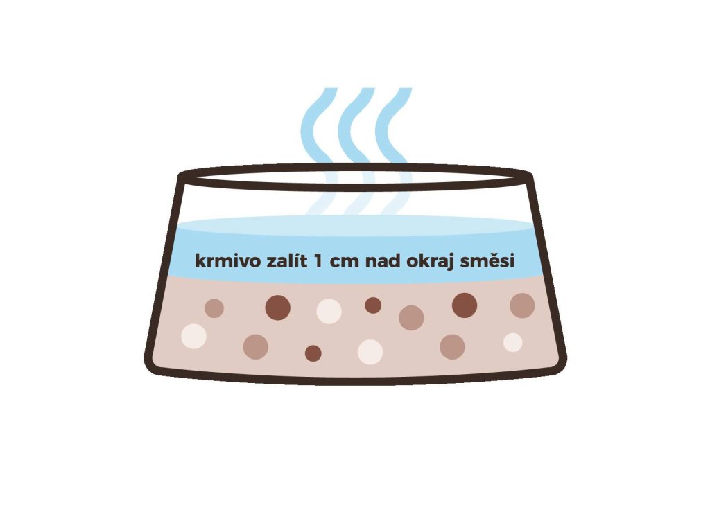 Přílohu zalijte horkou vodou 0,5 - 1 cm nad úroveň směsi a nechte několik minut nasáknout a vychladnout. Přimíchejte maso nebo další suroviny dle libosti.
