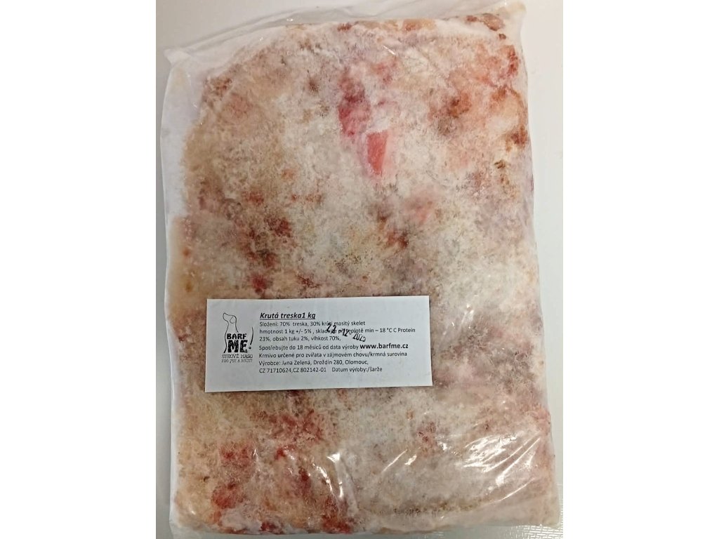 Balení 1kg, složení: 70% celá mletá treska, 30% krůtí masitý skelet